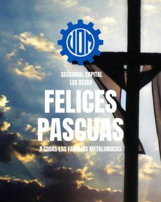 Desde la UOM Seccional Capital les deseamos unas lindas pascuas de resurrección. Que el Señor cuide y bendiga nuestros hogares y puestos de trabajo. Disfrutemos en familia estas fechas tan especiales que año tras año refuerzan nuestra unión y compromiso por los valores cristianos.